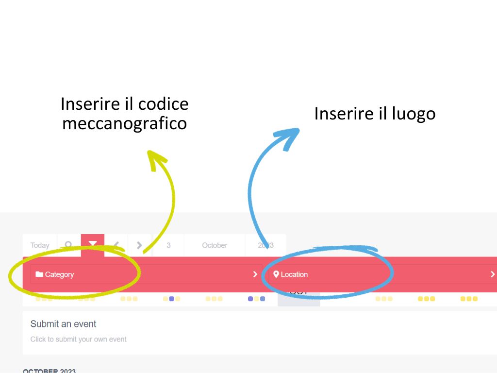 Oppure, è possibile sfruttare i filtri disponibili: Categoria e Location. Nella prima, è possibile inserire il codice meccanografico dell’istituto scolastico di proprio interesse. Nella seconda, il luogo. Questo filtro, consente di scoprire eventi in programma nel proprio comune. Ma anche di ricevere le informazioni logistiche per raggiungere l’evento.