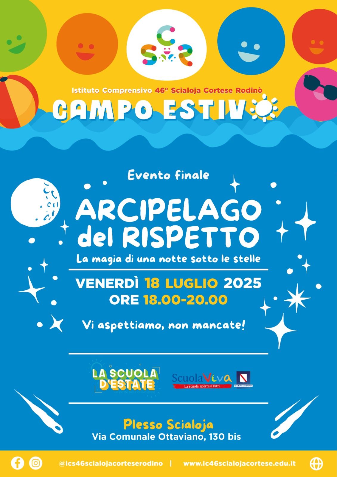 Si è concluso il progetto NOI GIOVANI ARTISTI 2 dell’IC 46° Scialoja-Cortese-Rodinò di Napoli realizzato nell’ambito della II annualità del programma Scuola Viva. Un’esperienza unica che ha visto protagonisti alunni e alunne dai 5 ai 16 anni e un percorso formativo ricco di attività, laboratori e momenti di condivisione, che ha trasformato l’estate in un’occasione di crescita, divertimento e scoperta.