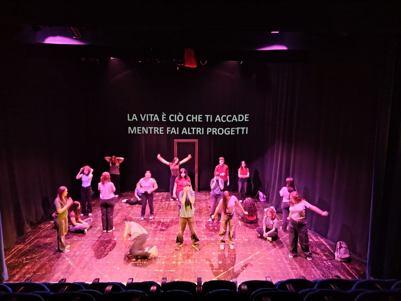 Tra i moduli più significativi, particolare rilievo ha avuto il laboratorio teatrale TEATRO LAB, un’esperienza formativa di 60 ore che ha coinvolto 19 studenti provenienti da diverse classi, dal IV ginnasio al III liceo. Questa eterogeneità ha favorito un confronto ricco e stimolante, creando un ambiente collaborativo capace di valorizzare le diverse sensibilità.