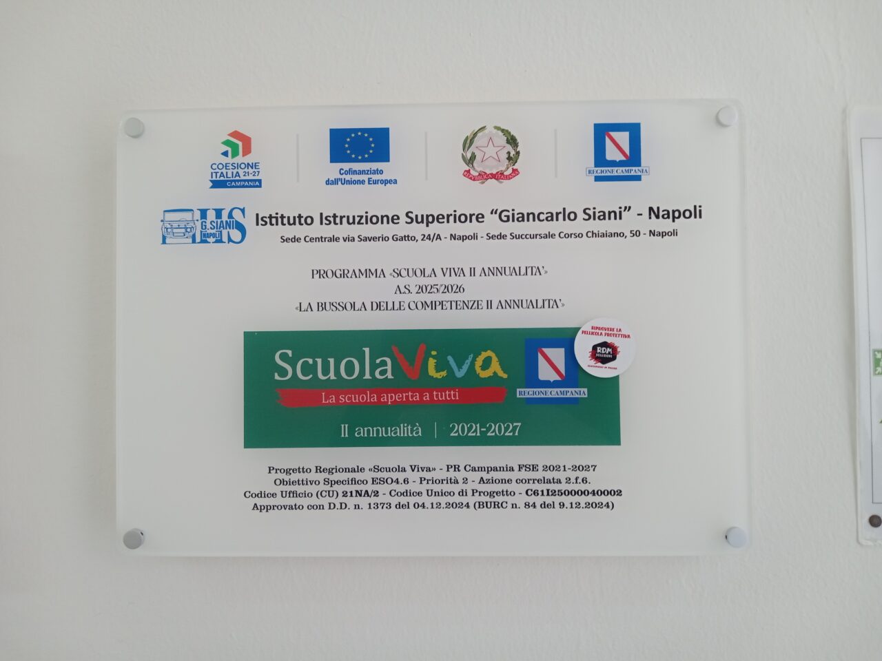 Si è conclusa con risultati significativi la II annualità del progetto LA BUSSOLA DELLE COMPETENZE II ANNUALITÀ, realizzato dall’ISIS G. Siani di Napoli nell’ambito del programma Scuola Viva 2021-2027. Un percorso articolato e innovativo che ha coinvolto studenti e territorio, con l’obiettivo di rafforzare competenze tecniche, relazionali e orientative, fondamentali per il futuro dei giovani.